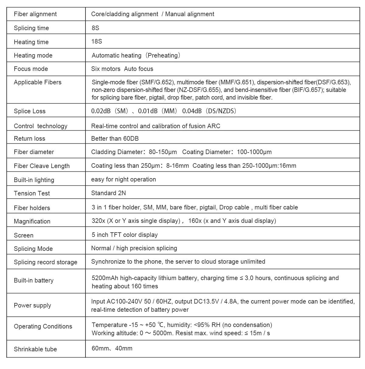 Splice Loss: 0.025dB(SM) .0.01dB(MM) .0.04dB(DS/NZDS)
