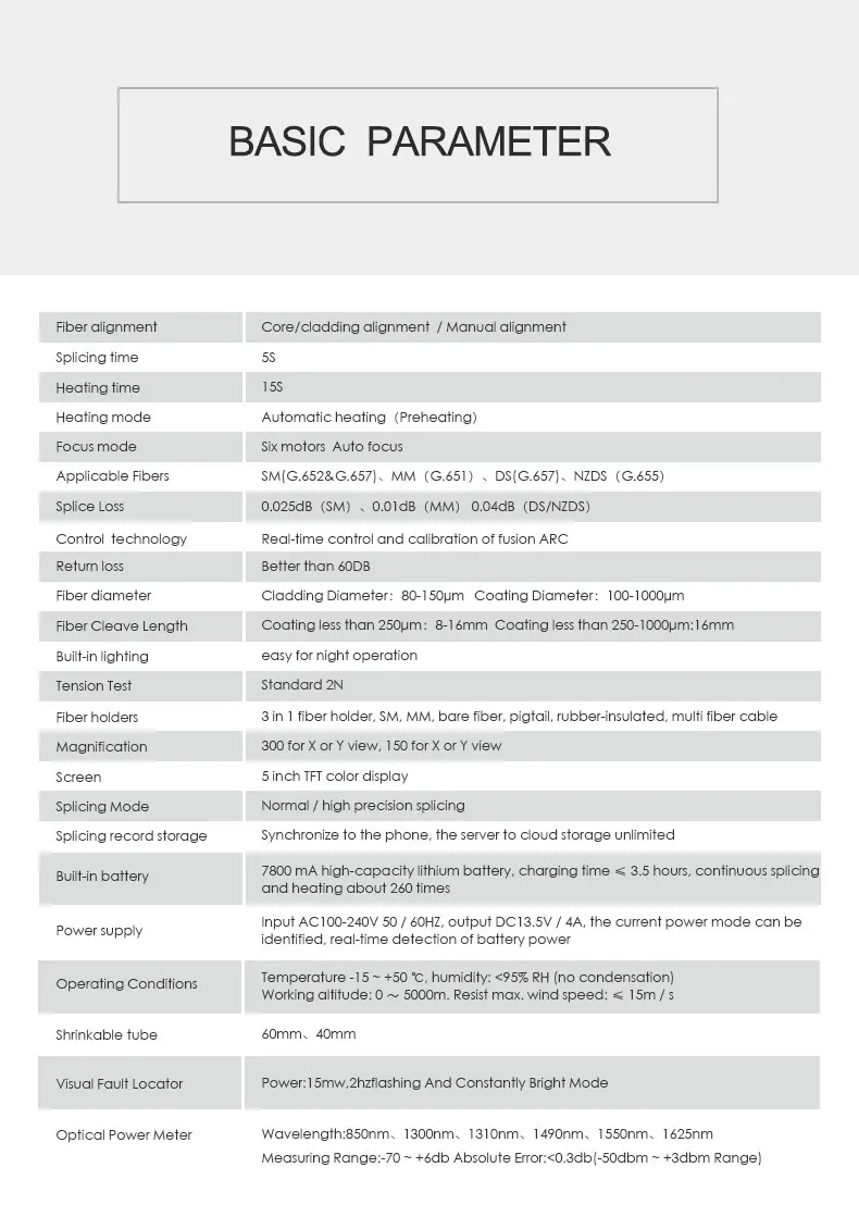 Splice loss: 0.025dB(SM).0.01dB(MM).0.04dB(DS / NZDS)