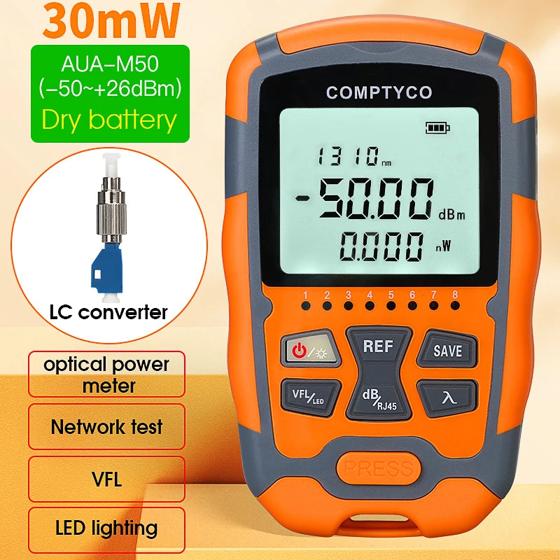 COMPTYCO AUA-M50 Mini OPM 4 in 1 Multifunction Optical Power Meter Visual Fault Locator Network Cable Test optical fiber tester