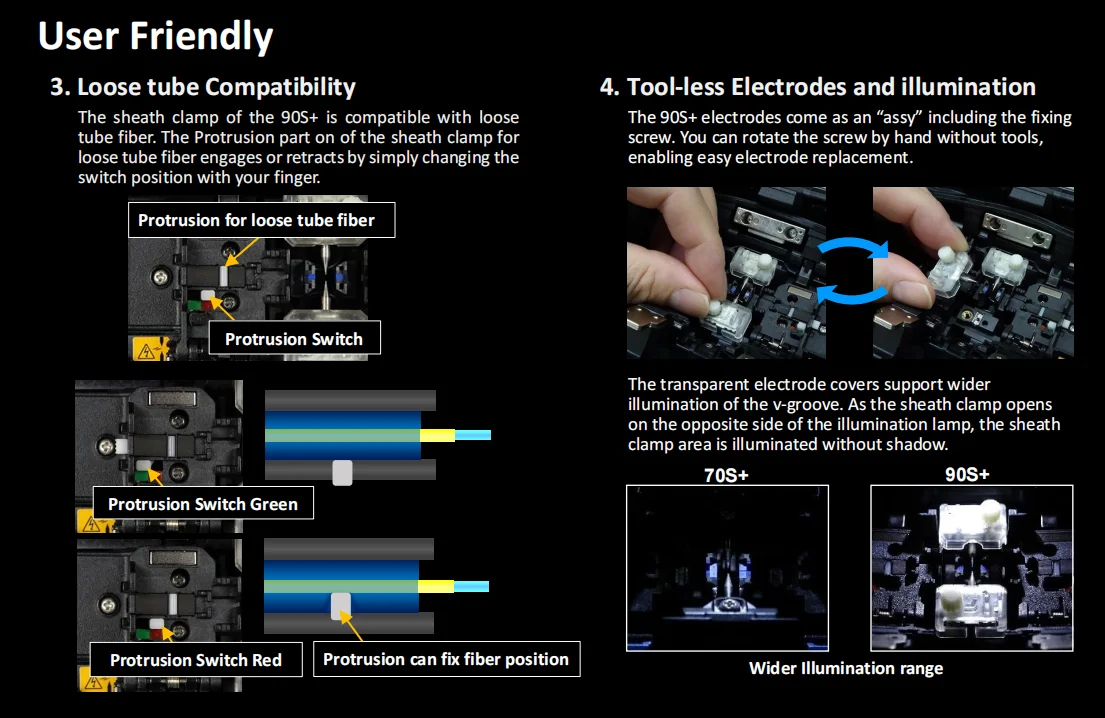 The 90S+ is packed with a whole host of new and enhanced features, specifically developed to enable faster splice cycle times with higher precision