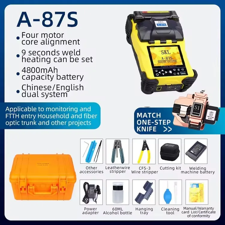 FTTH Fiber A-87S Fusion Splicer Welder Fiber Optic Tool Multi-function splicer machine 9 seconds welding splicing machine