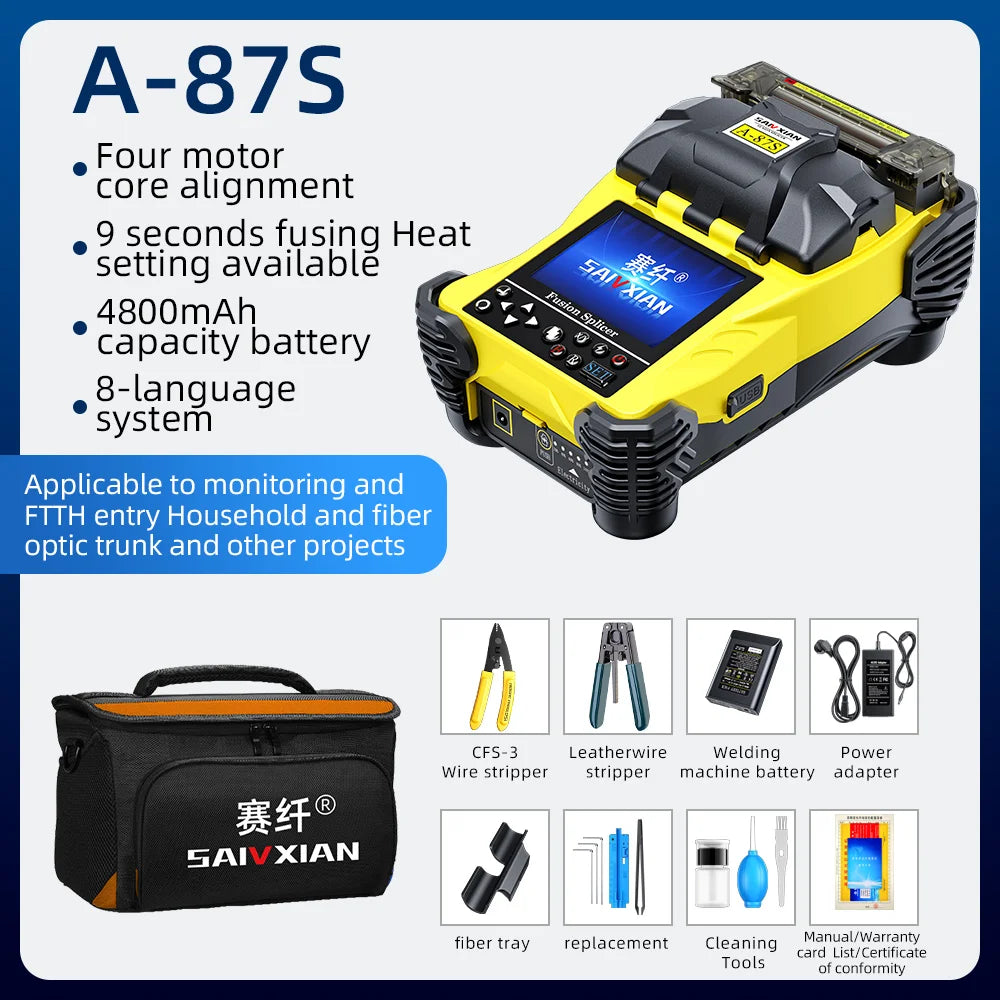 The Fusion Splicer A-87S High Quality Fully Automatic Mini Optic Fiber Fusion Splicer Splicing Machine Fiber Optic Tool Set FTTH is the yin, to your yang. You've found what you're looking for.