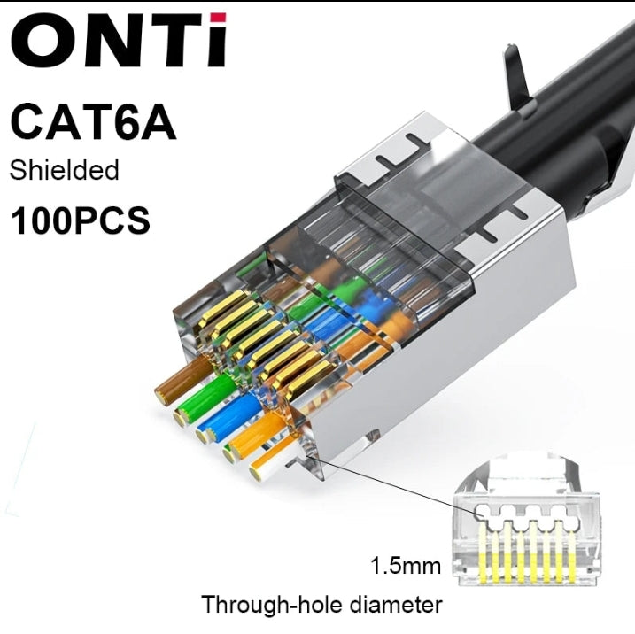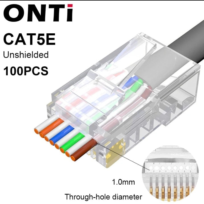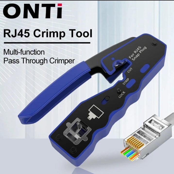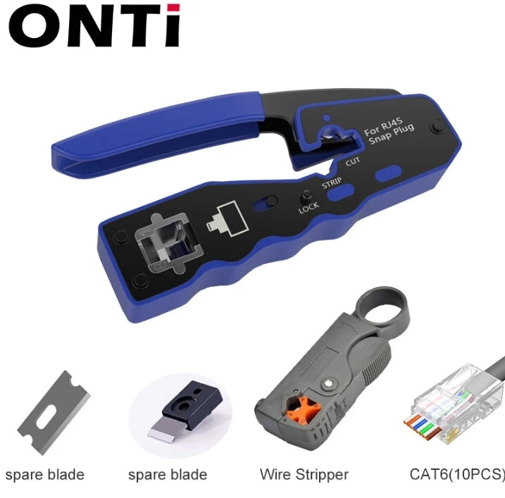 ONTi RJ45 Cat7/6/6A/5E Connector, RJ45 Crimper Tool Pass Through Crimp with Replacement Blade Ethernet Cable Stripper