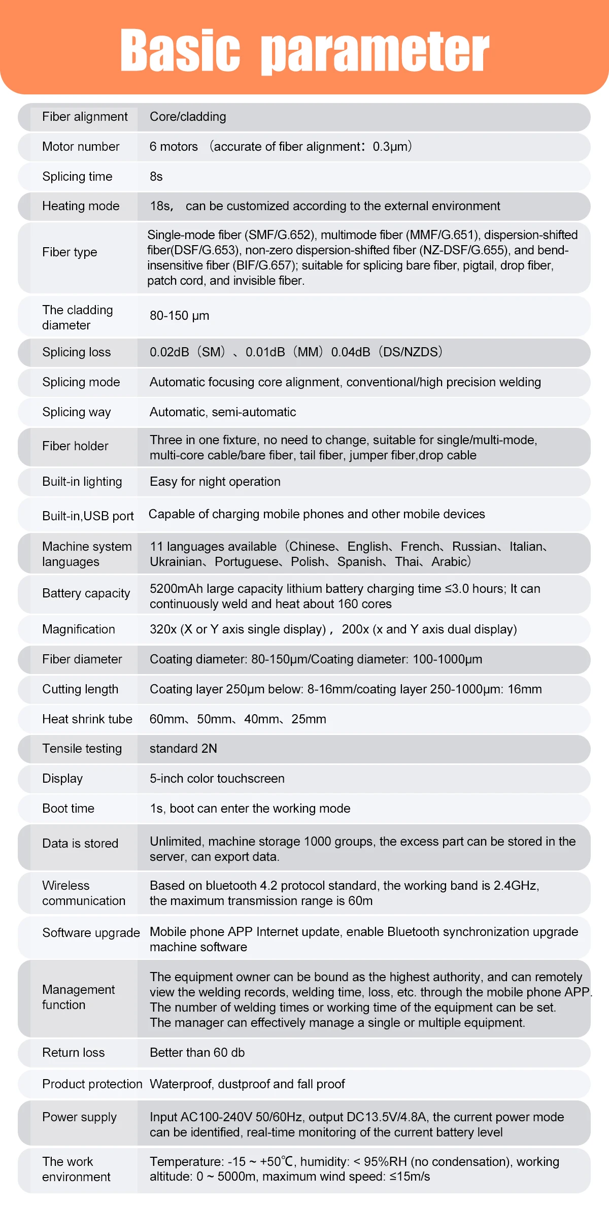 Splicing Mode: Normal/High Precision Splicing