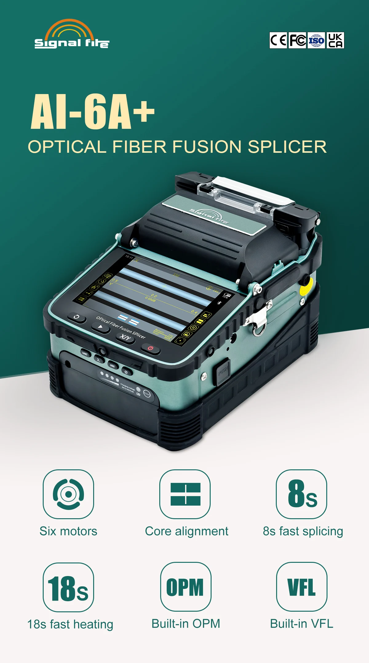 Signalfire AI-6A+/6C/6C+SM&MM Automatic FTTH Fiber Optic Splicing Machine Optical Fiber Fusion Splicer with OPM and VFL