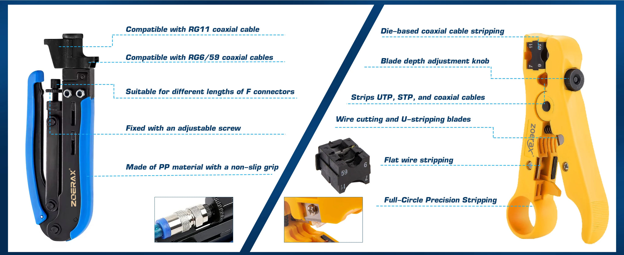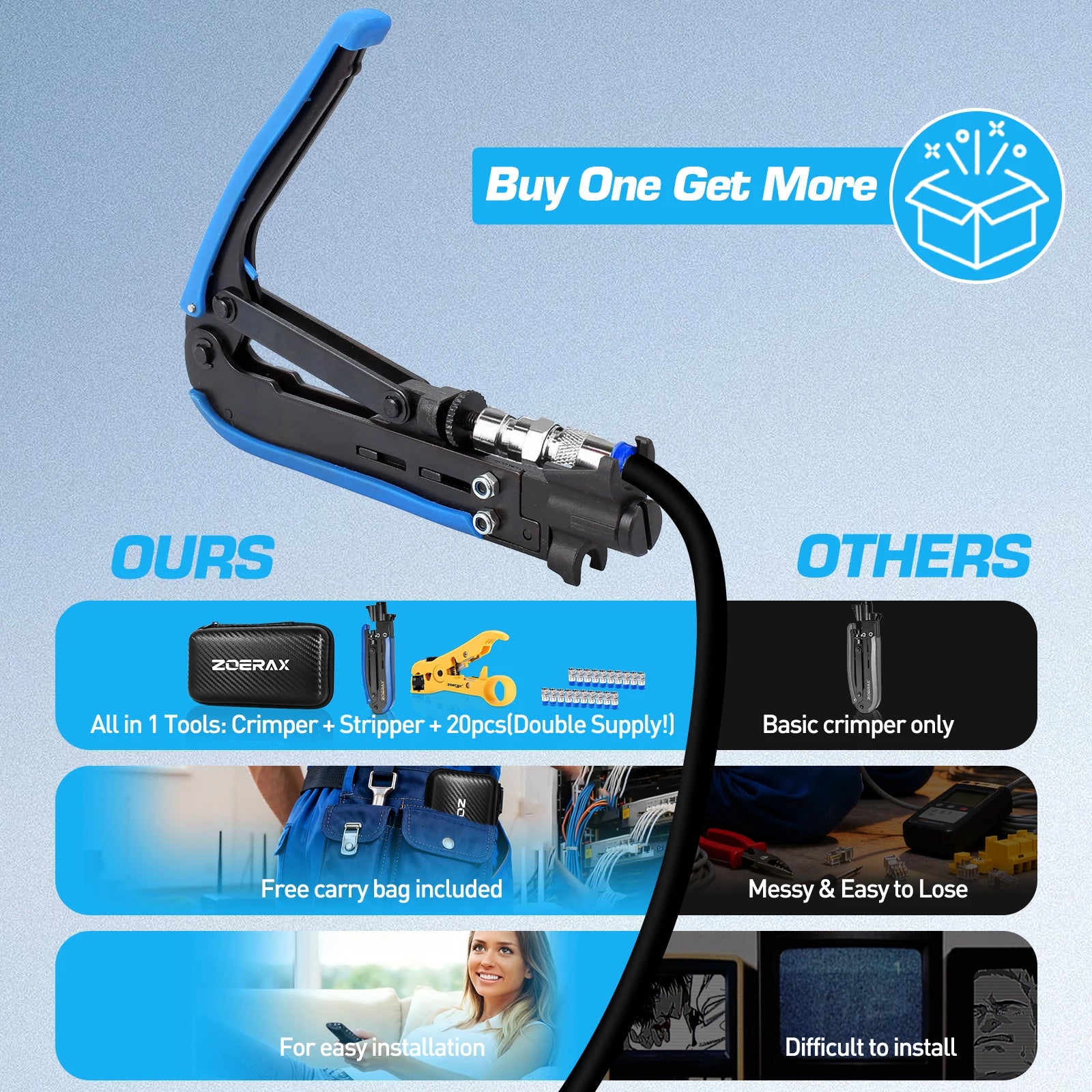 ZoeRax Coax Cable Crimper Tool Kit with Wire Stripper,20PCS F Connecto – Let's Fibre Technologies