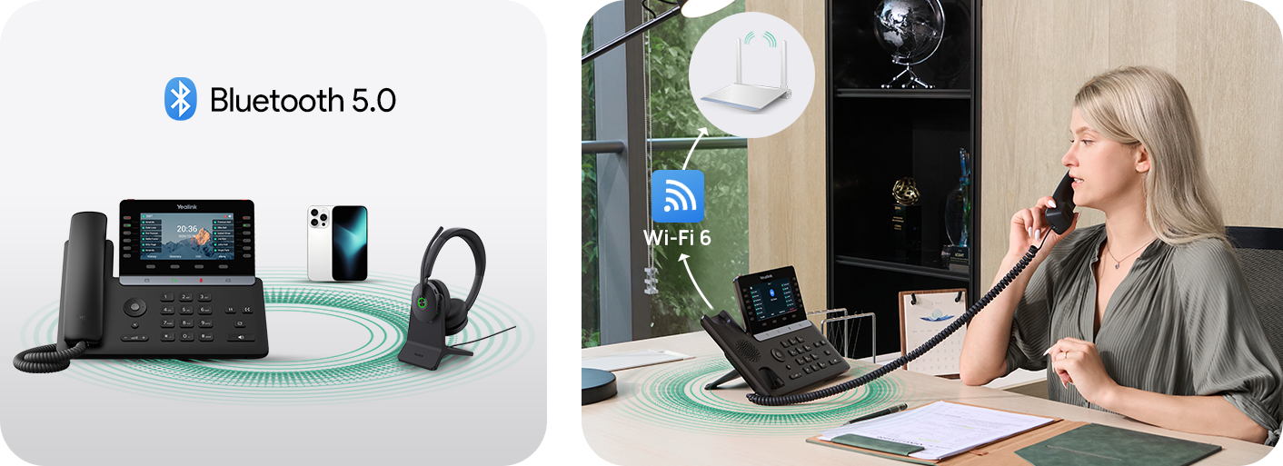 Adopting the innovative Bluetooth handset, Yealink T58W Pro with Camera pervades wireless communication by allowing the user to move around freely and conveniently.