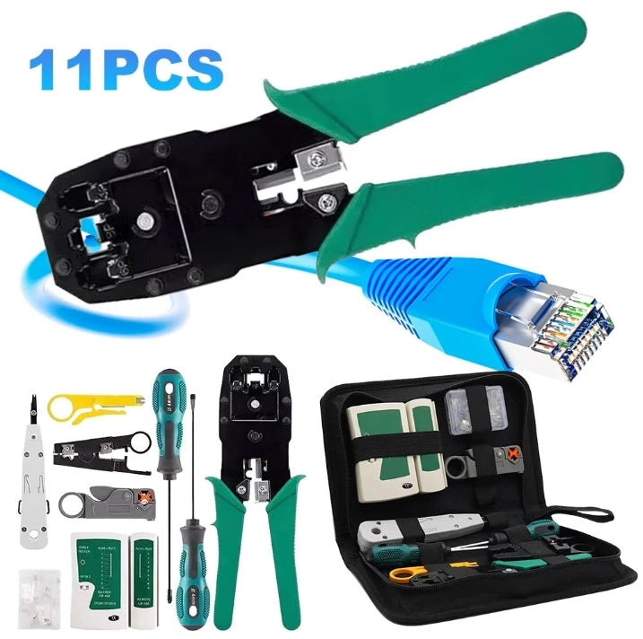 11Pcs Portable LAN Network Tool Set Wear Resistant Computer Network Repair Tool Kit Crimping Maintenance Tool Set for Home Office