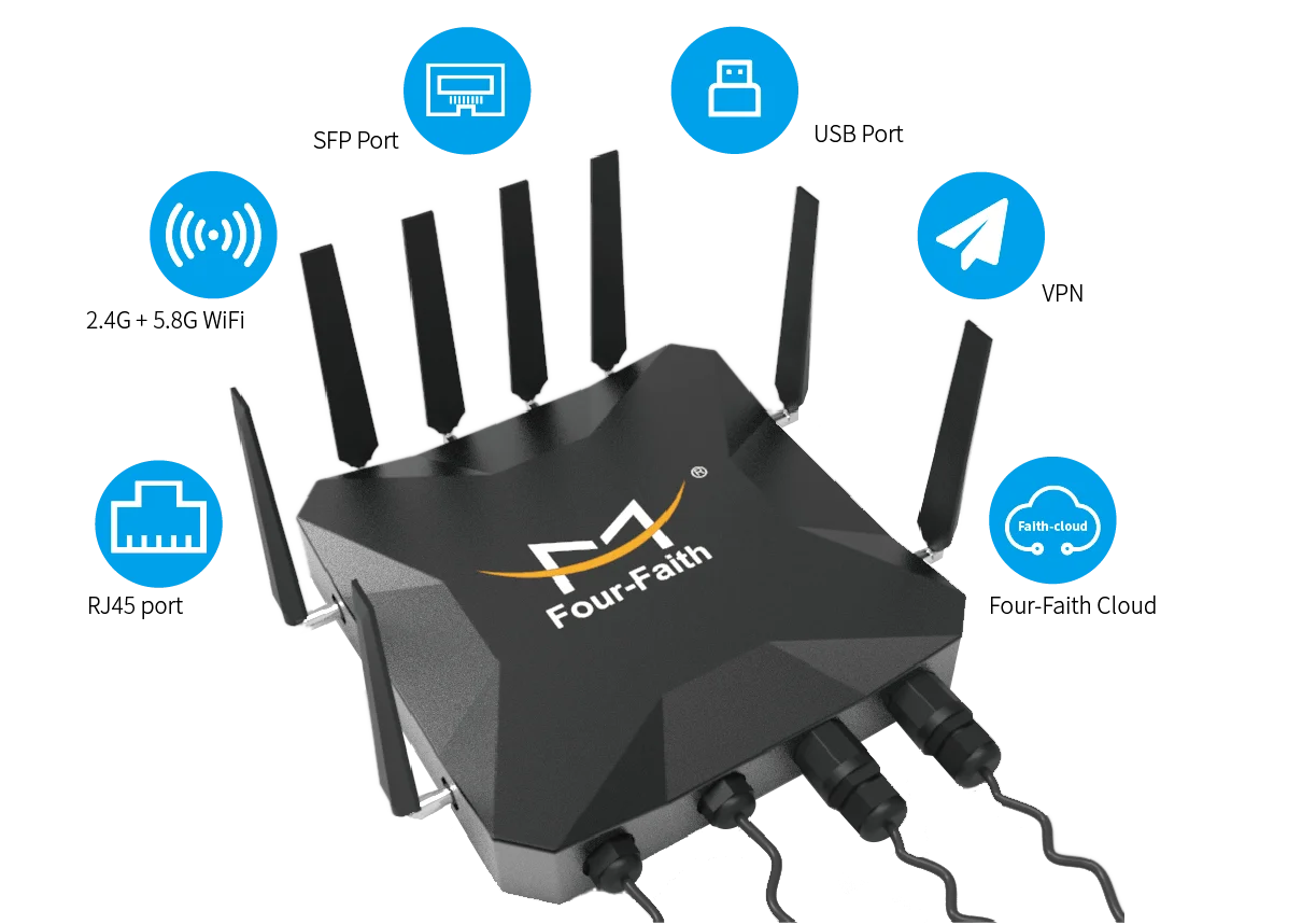Supports NSA and SA networks, compatible with all operators. Using complete anti-drop mechanism, data transmission is stable. Support hardware encryption. Support 5G/4G, Ethernet smart switch. Support positioning function (Beidou, GPS), PPS Industrial design, high and low temperature resistance, durable Support dual-band WiFi (2.4G and 5.8G) Support IPV6/IPV4