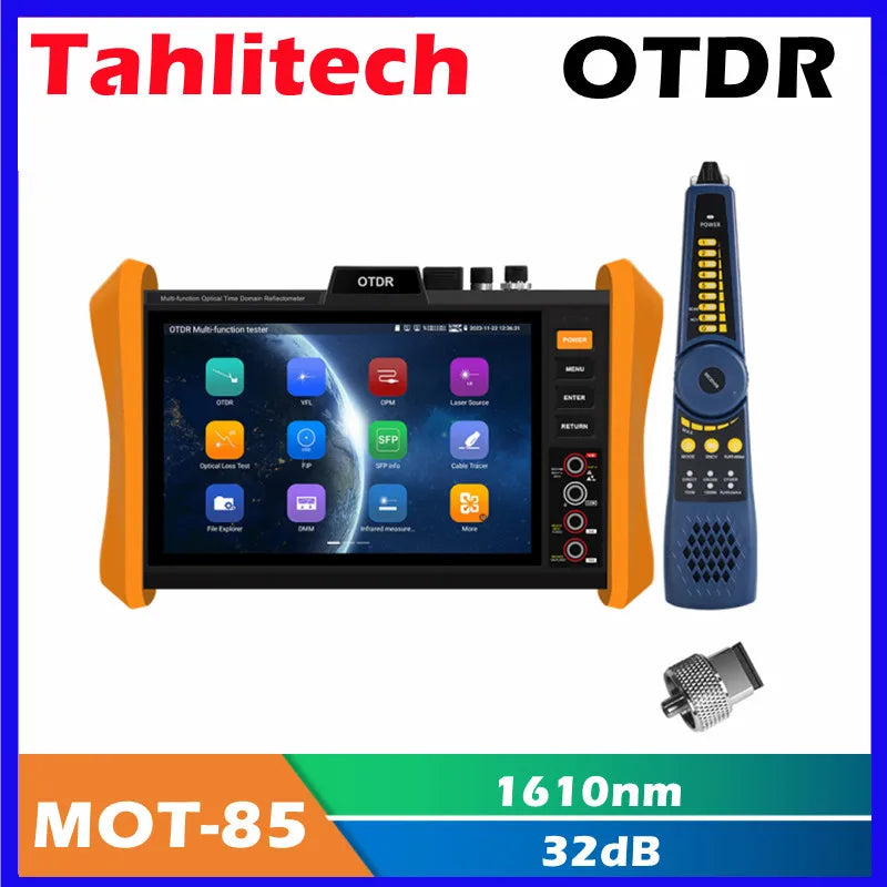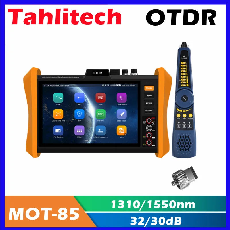 MOT-85 OTDR Tester 8 Inch Touch Screen OTDR OPM VFL Optic Time-domain Reflectometer Utp Cable Optic Fiber Tester With Android system and WIFI Testing Function.