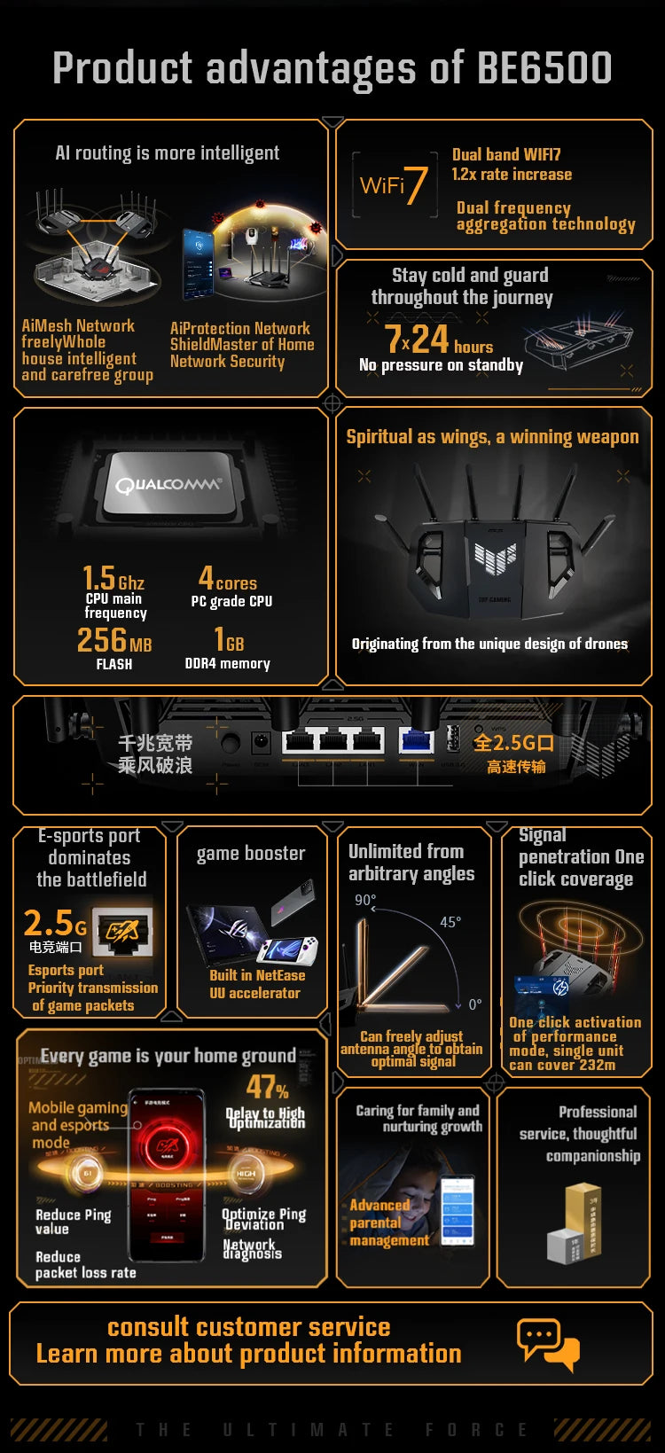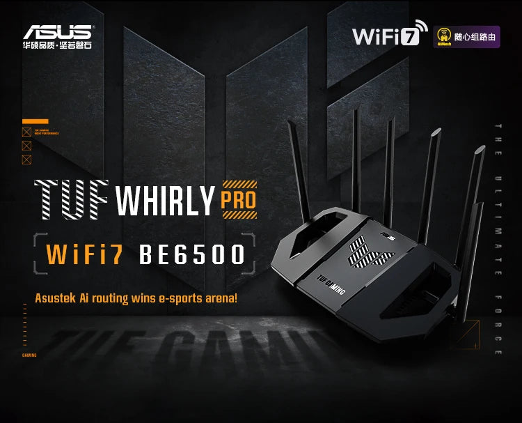 ASUS TUF Gaming BE6500 Dual Band WiFi 7 (802.11be) Extendable Gaming Router, Quad 2.5GbE ports, 3-step Port Forwarding, Smart Home Master, AiMesh support, and AiProtection Pro for Network Security