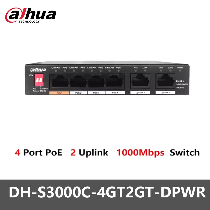 Dahua POE Switch 4/8/16/24 Ports 1/2 Uplink RJ45 Ethernet 100/1000Mbps Switch For IP Camera DH-S3000C-4GT2GT-DPWR