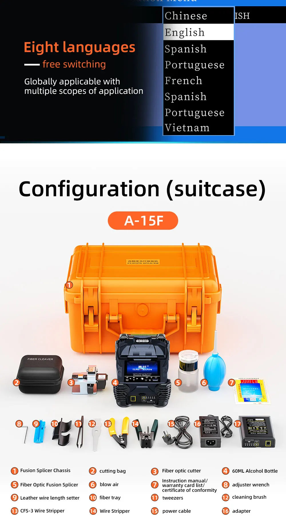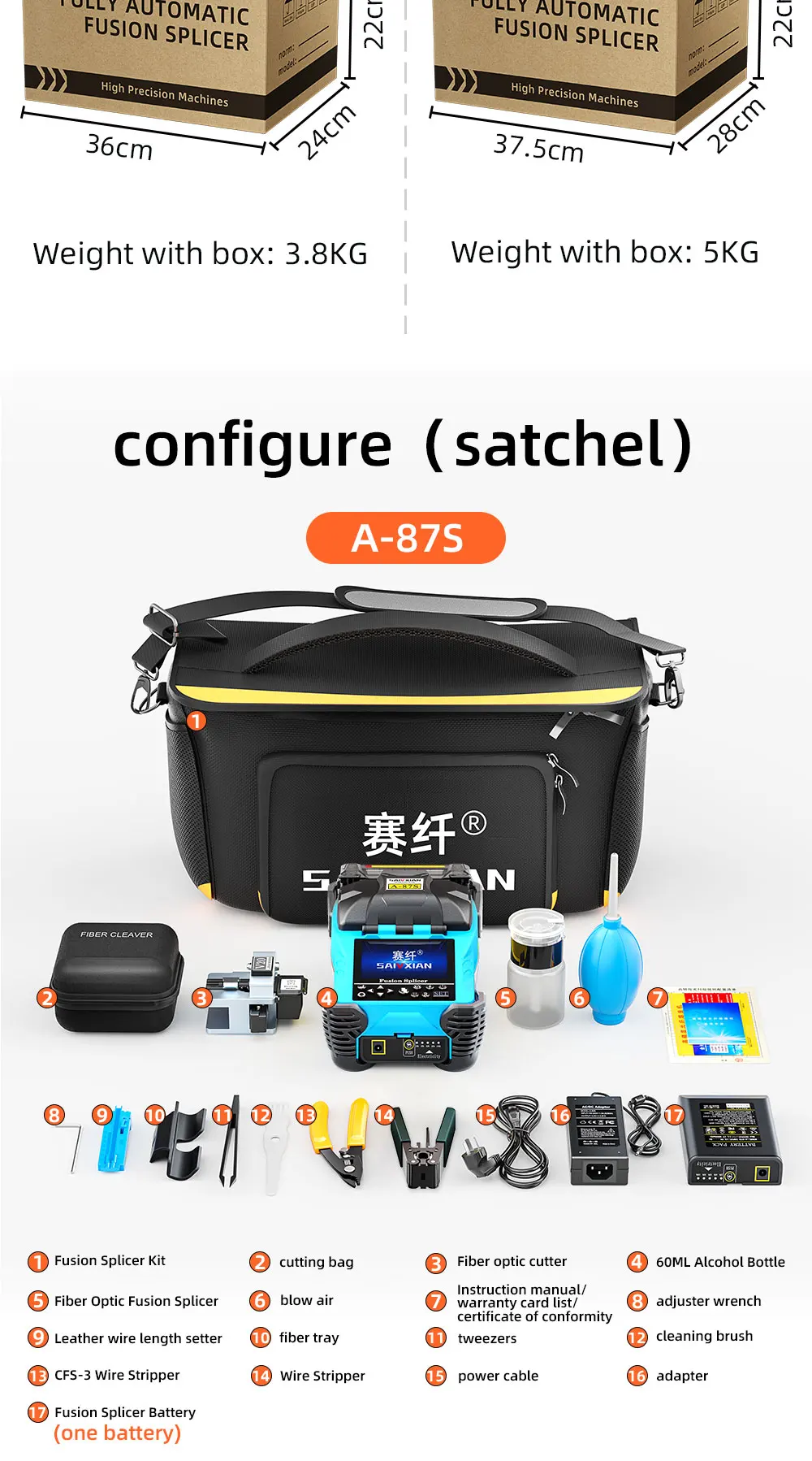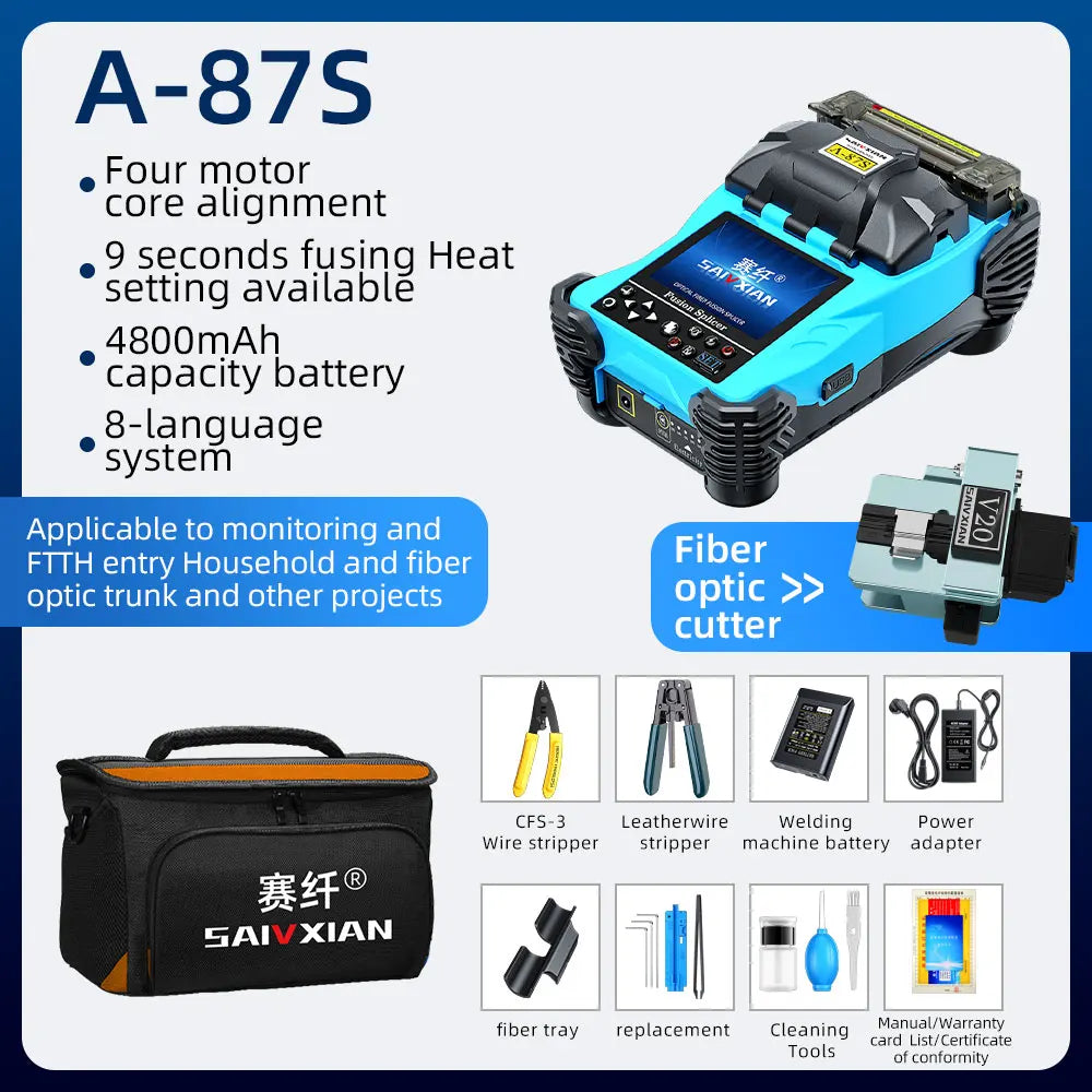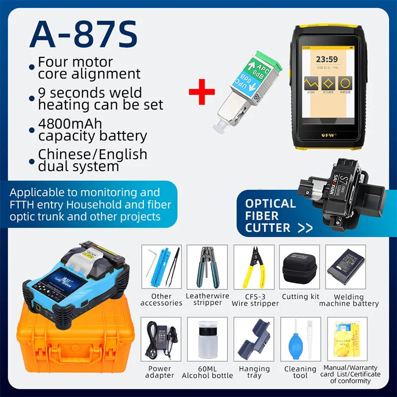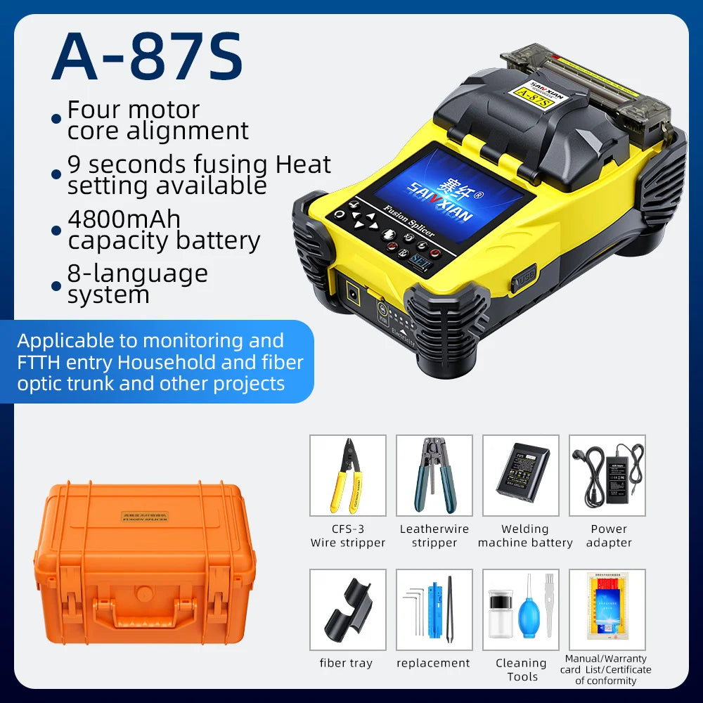 Fiber Optic Fusion Splicer Full set Hot Melt Machine Fully Automatic Fusion Splicer Fiber Optic Cable Trunk Wire Jumper A-87S