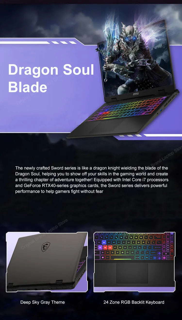 2024 MSI Sword 16 HX Laptop 16 Inch 2.5K QHD 240Hz IPS Screen Netbook i7-14700HX 16GB 1TB SSD RTX4060 Gaming Notebook Computer