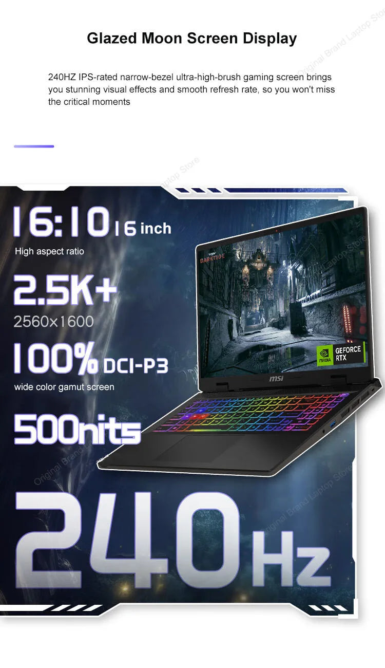 16" 2.5K QHD 240Hz 2560*1600 100% DCI-P3 IPS-Level Narrow Bezel Gaming Screen |