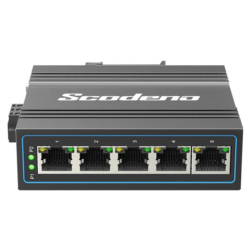 Scodeno Industrial Etherent Switch Unmanaged IP40 DIN-Rail DC12~58V input Voltage, 1G switching, Fanless, XPTN-9000-45-5TXm
