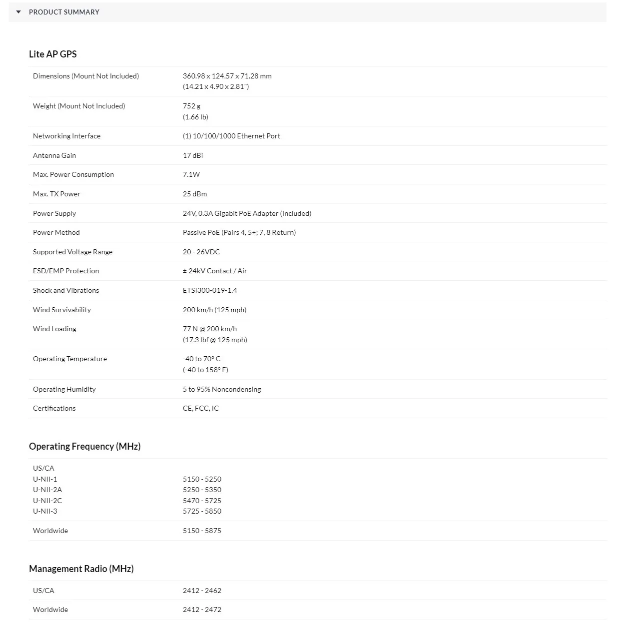 airMAX Lite AC AP, 5 GHz, GPS Access Point