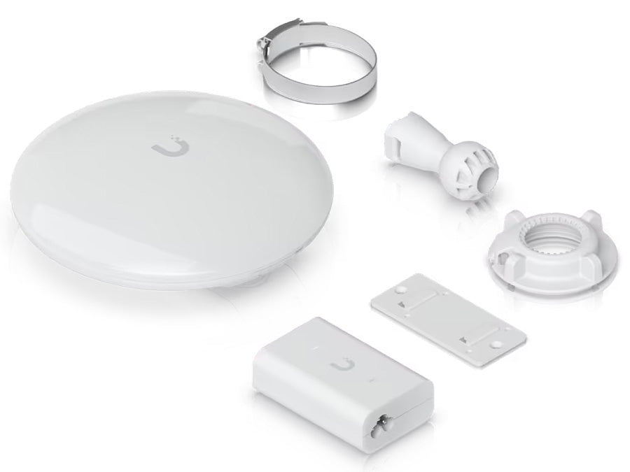Ubiquiti's UDB-PRO is a UniFi long range outdoor radio with integrated UniFi WiFi Auto-Link. It features 2x Gigabit Ethernet ports, one for PoE input and the other with PoE output. PoE+ (802.3at) input is required for PoE passthrough on port 2. The UDB-PRO is sold as a single unit, and can be bridged to any UniFi Access point or used as a pair for PtP connections. It can be configured and managed with the UniFi Network Application.