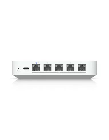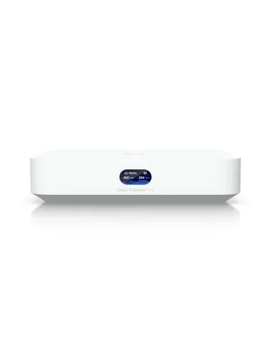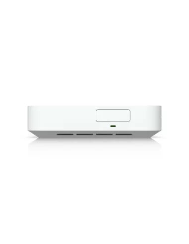 The Ubiquiti UniFi UCG-MAX is a compact and powerful UniFi Cloud Gateway that supports up to 2.5Gbps multi-WAN connections. It offers advanced routing and security capabilities, with 1.5Gbps IPS routing and 512GB SSD for NVR storage. Designed to handle all UniFi applications for comprehensive network management, it features 4x 2.5Gbps Ethernet ports, a 2.5Gbps WAN port, a quad-core 1.5GHz CPU, a 0.96" LCM status display, and Multi-WAN load balancing. Configuration and management are done through the UniFi Network Application.